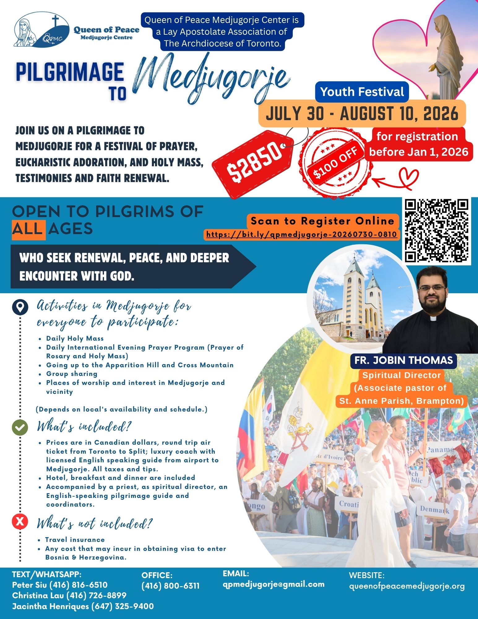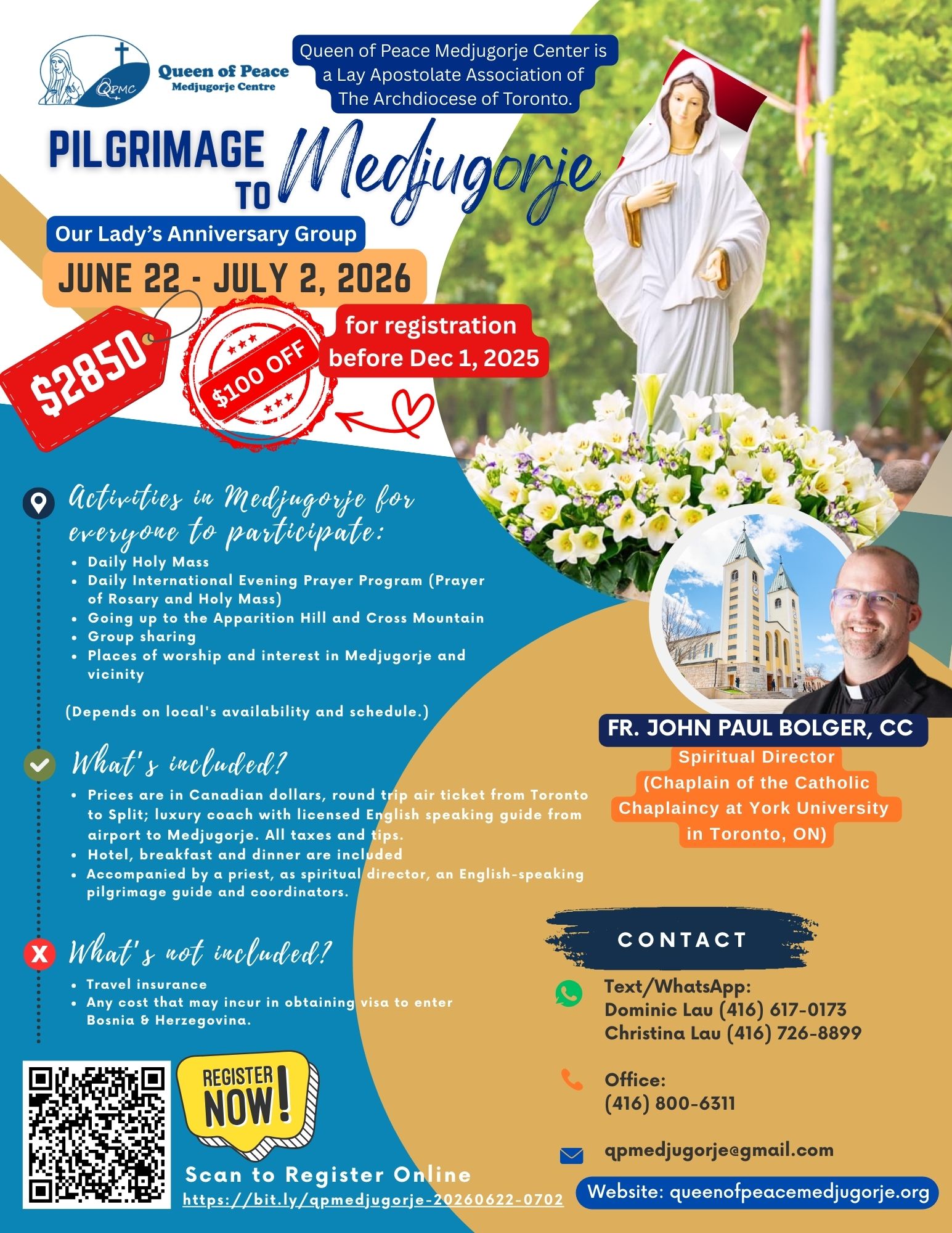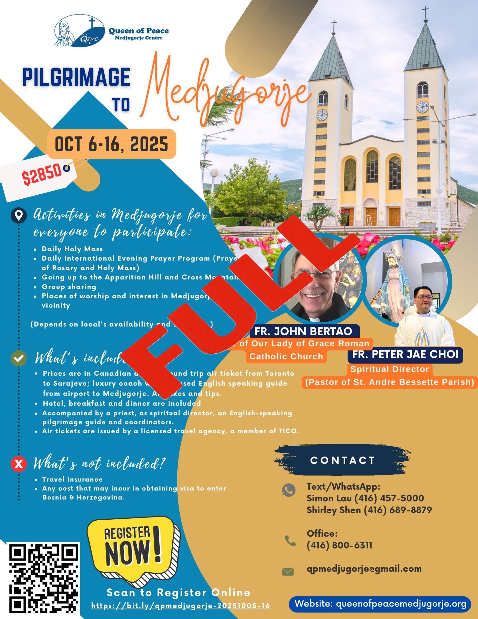 This pilgrimage is held by QUEEN OF PEACE MEDJUGORJE CENTRE, a registered not for profit organization.